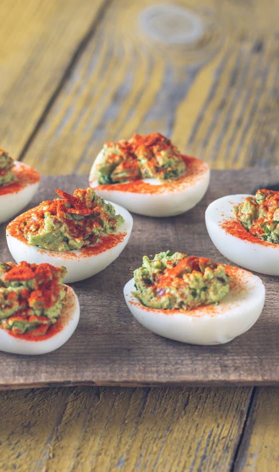 Descasque e corte os ovos ao meio com uma faca afiada e muito cuidado. Retire as gemas e reserve.