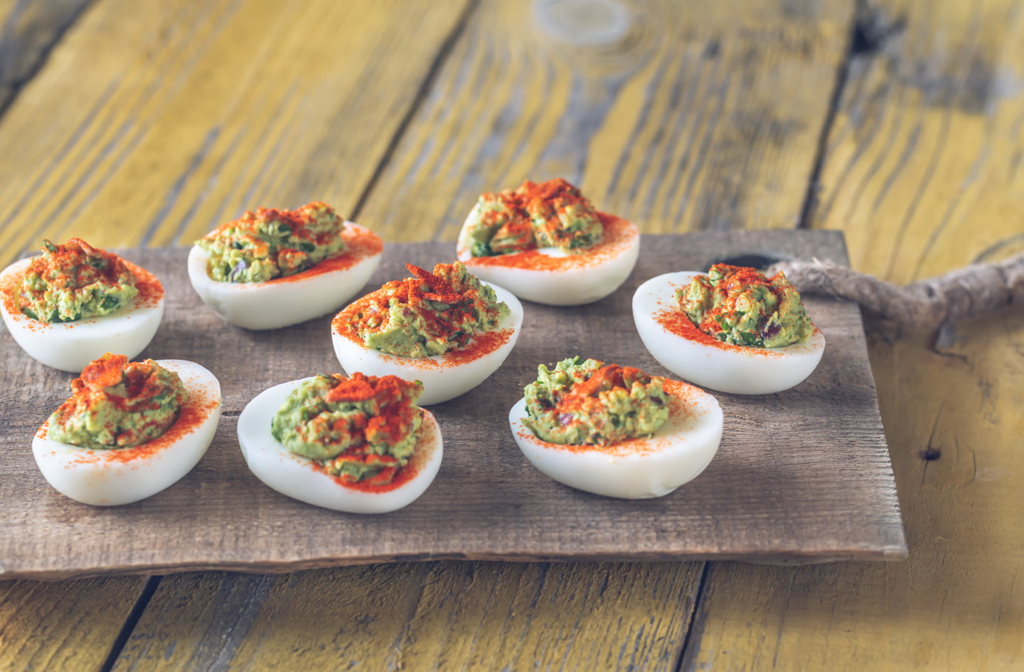 Com uma colher ou um saco de confeiteiro, encha cada metade de ovo com a mistura.