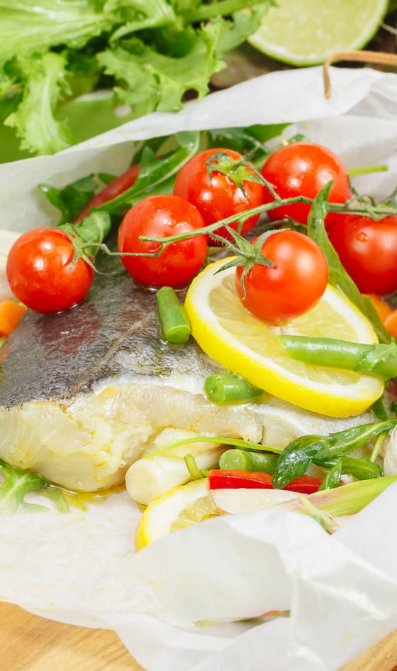 Wenn die Päckchen fertig sind, aus dem Backofen nehmen und vorsichtig öffnen, sodass kein Dampf entweicht.