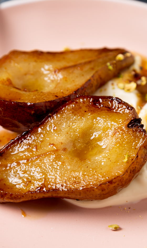 The pears are ready when they are tender when pierced and turning golden as they caramelise.