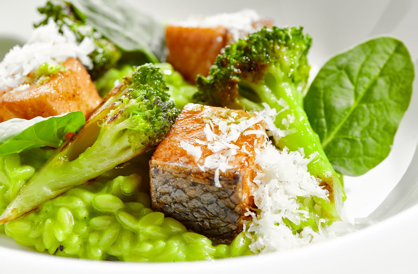 Gemüsebeilagen, z. B. gekochter Broccoli, Pak Choi, Spinat usw.