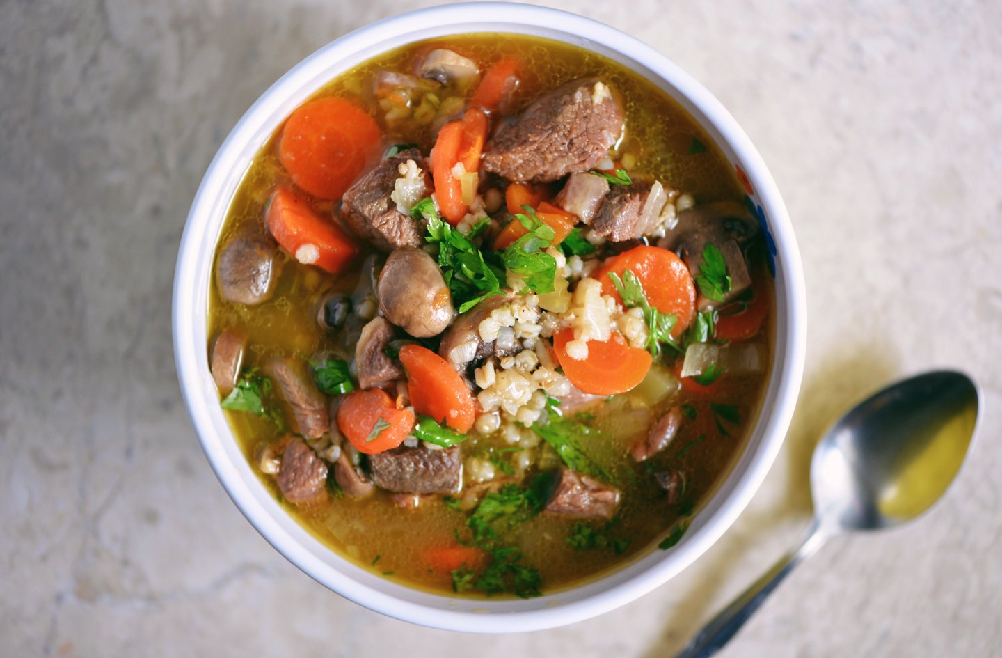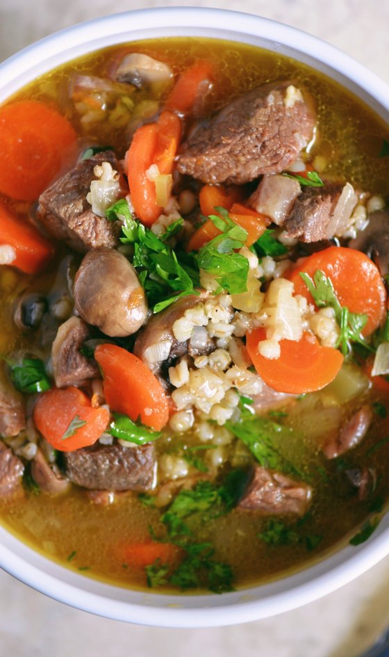Soupe de bœuf et d'orge mijotée