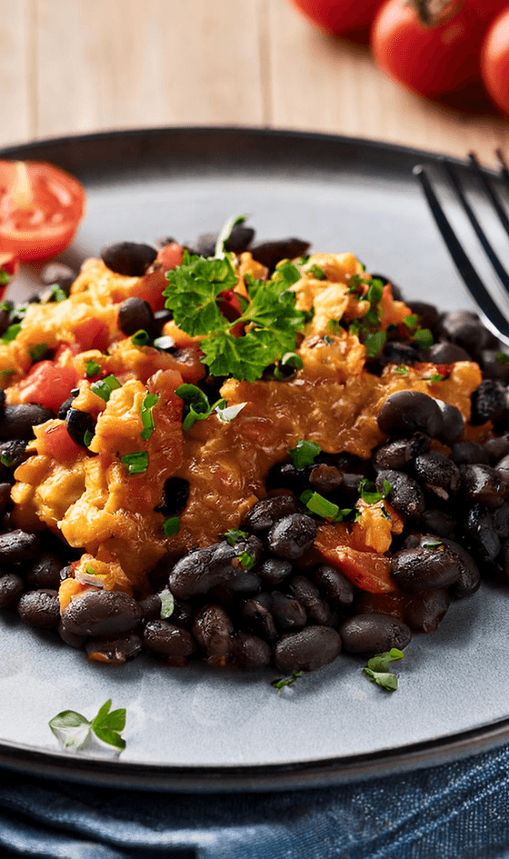 Oeufs brouillés aux haricots noirs pour le petit déjeuner