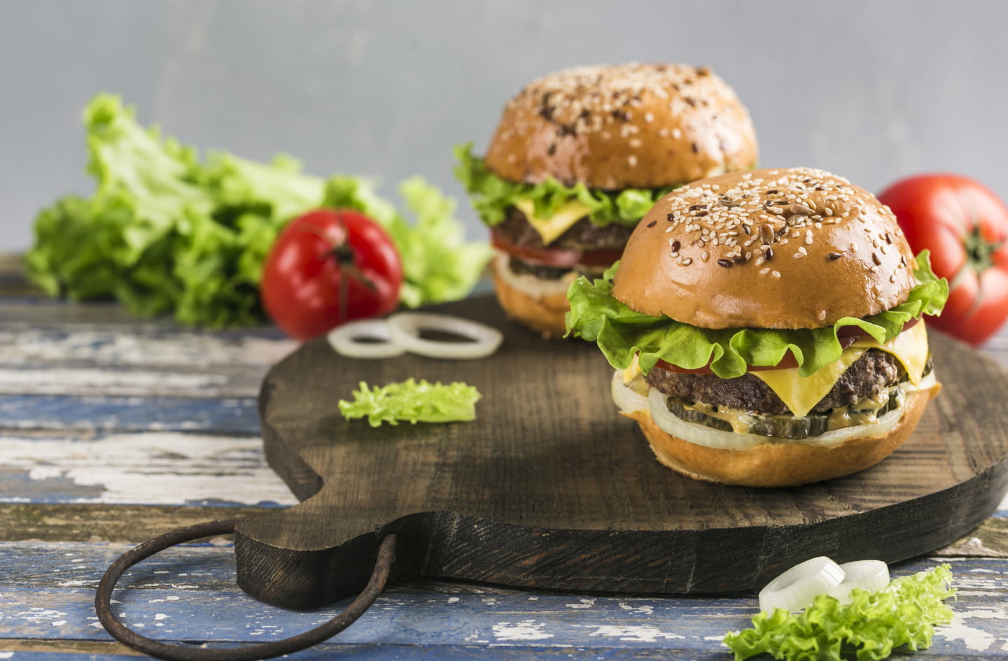 Monte os hambúrgueres e adicione o tomate, o alface e o que mais desejar.